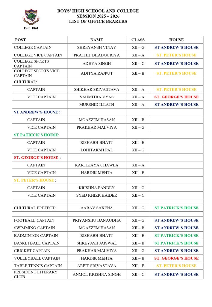 BHS PAST OFFICE BEARERS LIST